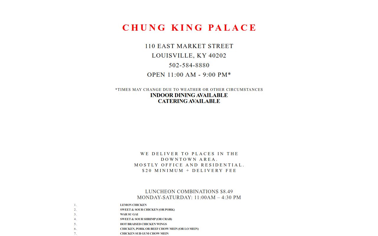 Established in 1992 Kings Chinese Restaurant serves the dishes you love with a Szechuan and Cantonese flair. Best take out in town. King Palace facebook page provides updates and offers.